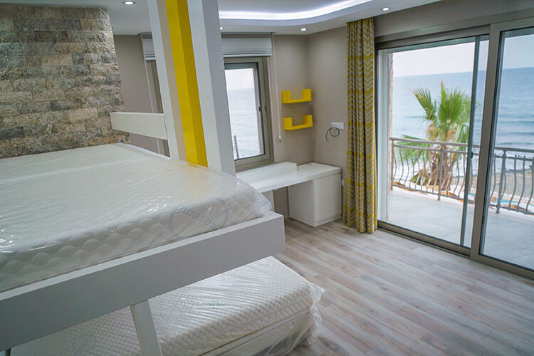 Η βίλα αποτελείται από τρεις ορόφους, χτισμένη με συγκεκριμένα υλικά. Έχει ανυψωθεί έτσι ώστε να μπορείτε να απολαύσετε τη θέα στη θάλασσα από κάθε όροφο. Στο ισόγειο θα βρείτε το κυρίως υπνοδωμάτιο, την κουζίνα και το σαλόνι, που οδηγεί σε μια μεγάλη εξωτερική βεράντα με πισίνα. Η κουζίνα είναι εξοπλισμένη με ένα μεγάλο νησάκι κουζίνας και σύγχρονες συσκευές. Στο υπόγειο βρίσκονται οι χώροι διασκέδασης, η σάουνα, το πλυντήριο και ένα γκαράζ για δύο αυτοκίνητα. Στον πρώτο όροφο υπάρχουν δύο ακόμη υπνοδωμάτια και ένα μπάνιο. Η βίλα είναι εξοπλισμένη με την τελευταία λέξη της τεχνολογίας. Έτσι μπορείτε να ρυθμίσετε όλα τα κλιματιστικά, τους λαμπτήρες και τις κλειδαριές της πόρτας με το τηλέφωνό σας.