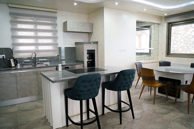 Η βίλα αποτελείται από τρεις ορόφους, χτισμένη με συγκεκριμένα υλικά. Έχει ανυψωθεί έτσι ώστε να μπορείτε να απολαύσετε τη θέα στη θάλασσα από κάθε όροφο. Στο ισόγειο θα βρείτε το κυρίως υπνοδωμάτιο, την κουζίνα και το σαλόνι, που οδηγεί σε μια μεγάλη εξωτερική βεράντα με πισίνα. Η κουζίνα είναι εξοπλισμένη με ένα μεγάλο νησάκι κουζίνας και σύγχρονες συσκευές. Στο υπόγειο βρίσκονται οι χώροι διασκέδασης, η σάουνα, το πλυντήριο και ένα γκαράζ για δύο αυτοκίνητα. Στον πρώτο όροφο υπάρχουν δύο ακόμη υπνοδωμάτια και ένα μπάνιο. Η βίλα είναι εξοπλισμένη με την τελευταία λέξη της τεχνολογίας. Έτσι μπορείτε να ρυθμίσετε όλα τα κλιματιστικά, τους λαμπτήρες και τις κλειδαριές της πόρτας με το τηλέφωνό σας.